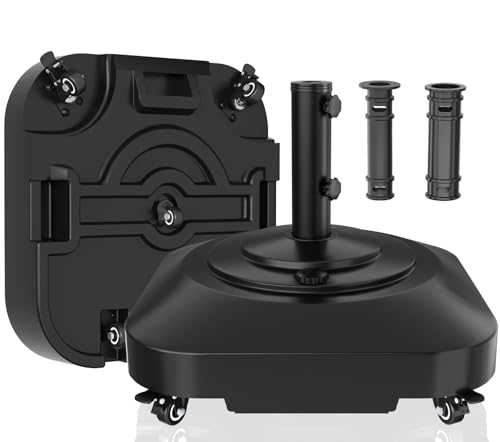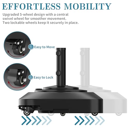 Patio Umbrella Base Heavy Duty Wind-Resistant Mobile Square Market Stand for Outdoor Deck Poolside Lawn Fits Most Umbrellas